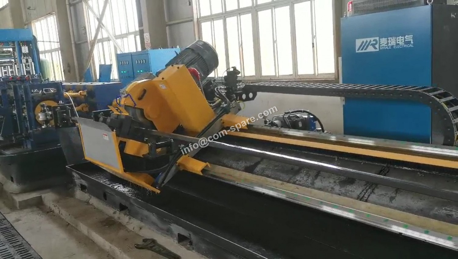 Now, The Tube mill Flying Cold Saw Cut Off, seams like the milling saw unit, Saw blade running speed is lower than hot friction saw. Pipe surface has no deformation or burrs, no need to use end-facing machine line to remove the burrs. We can finish these job by on-line production. Flying Cold Saw machine can save workload time and labor force, without spark, low noise, high safety, high production efficiency and high quality steel pipes. Help our dear customer reduce the labor cost, reduce the edge-reprocessing machine cost, and improve the productivity and economical performance.